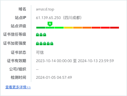 配置完之后点击保存,再去看一看 SSL/TLS 安全评估报告罢。