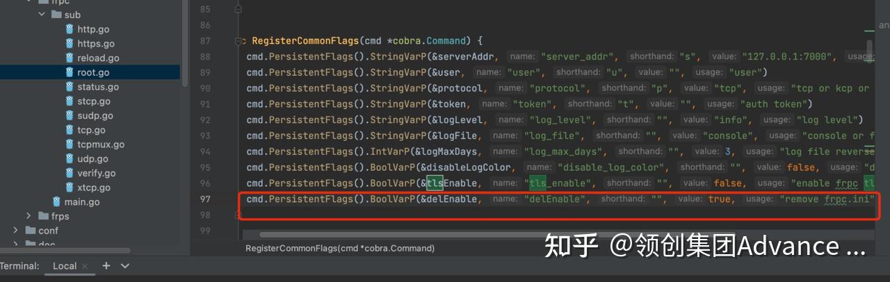 修改文件 /frp/cmd/frpc/sub/root.go 文件