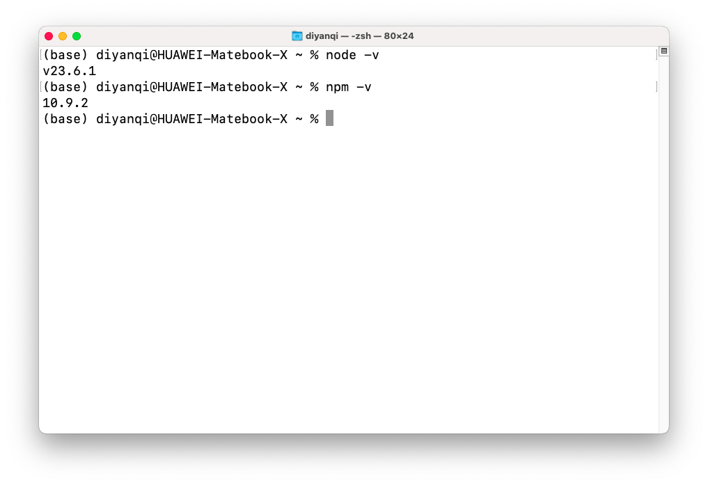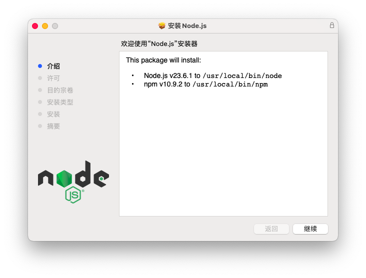 安装完后就能在命令行中使用 node 和 npm 了。