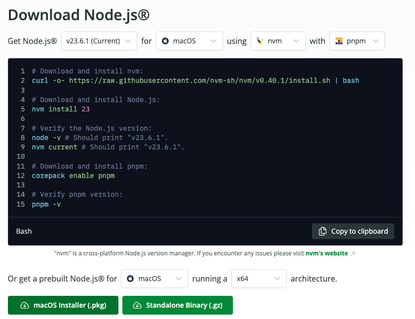 curl -fsSL https://get.pnpm.io/install.sh | env PNPM_VERSION=10.0.0 sh -